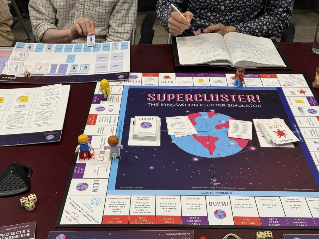 Supercluster! was first developed to provide a fun, engaging and competitive way to learn about innovation superclusters around the world. Today, it is regularly used by global cluster experts, ecosystem builders, national cluster programs and cluster managers to build better clusters around the world. Working with the ISED Global Innovation Cluster team in 2025, this was a unique and exciting opportunity to bring together key ISED staff, global cluster expertise and run a fast-paced, expert-level Supercluster! Session.