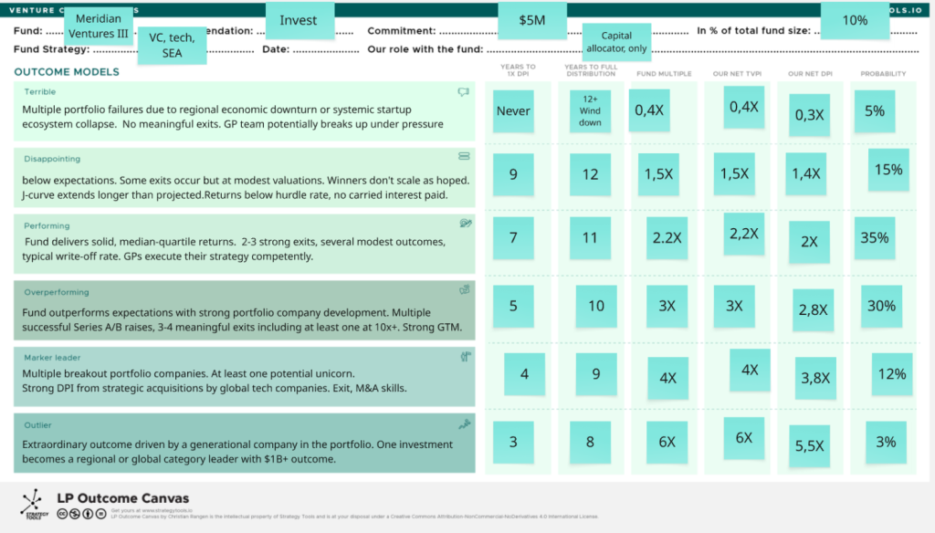 Scenario Description: Fund establishes Meridian as the definitive early-stage firm in ASEAN ex-Singapore. Multiple breakout portfolio companies. At least one potential unicorn. Strong DPI from strategic acquisitions by global tech companies. Fund III becomes a reference point for regional emerging manager success.