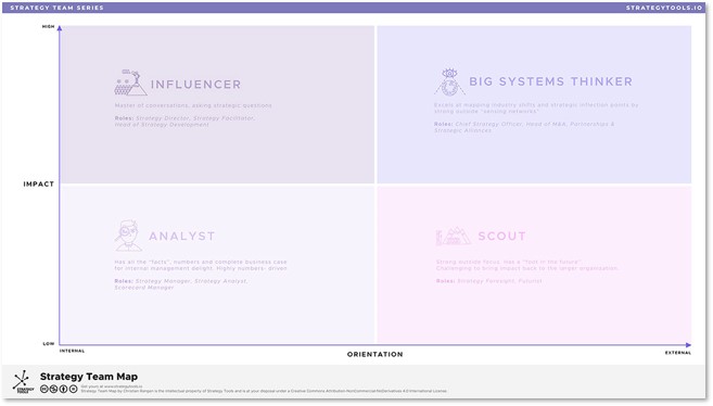 Use this canvas as an introduction to the four roles on any strategy team and figure our what roles you need on your team.