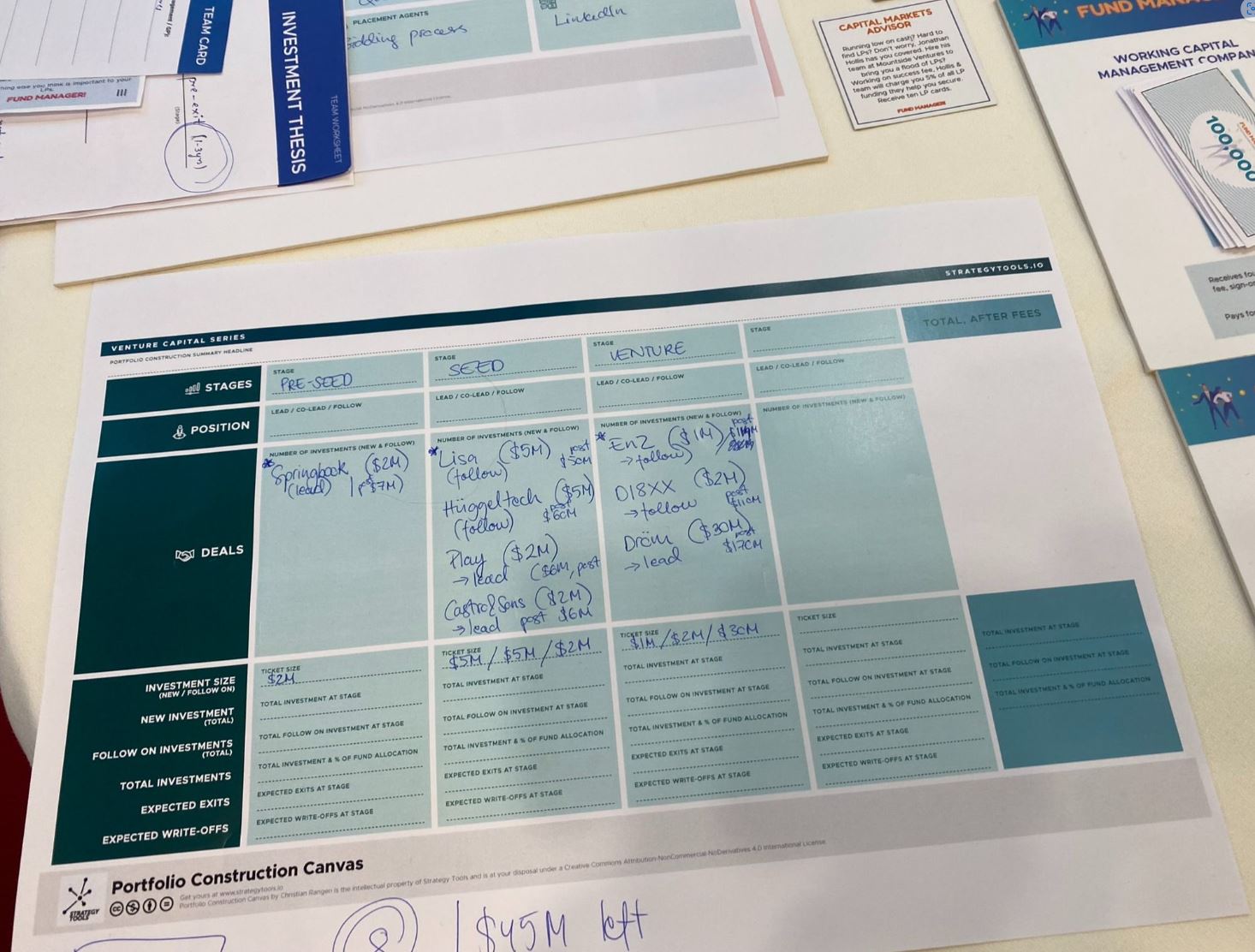 One of the participants, Wolf-Christian Eickhoff, reflected, “I got a much better understanding of the full VC fund lifecycle — not just in a theoretical way, but hands-on, because you’re running through the whole thing in these two days, from building your investment thesis to exiting your investments. You have to do it all.”