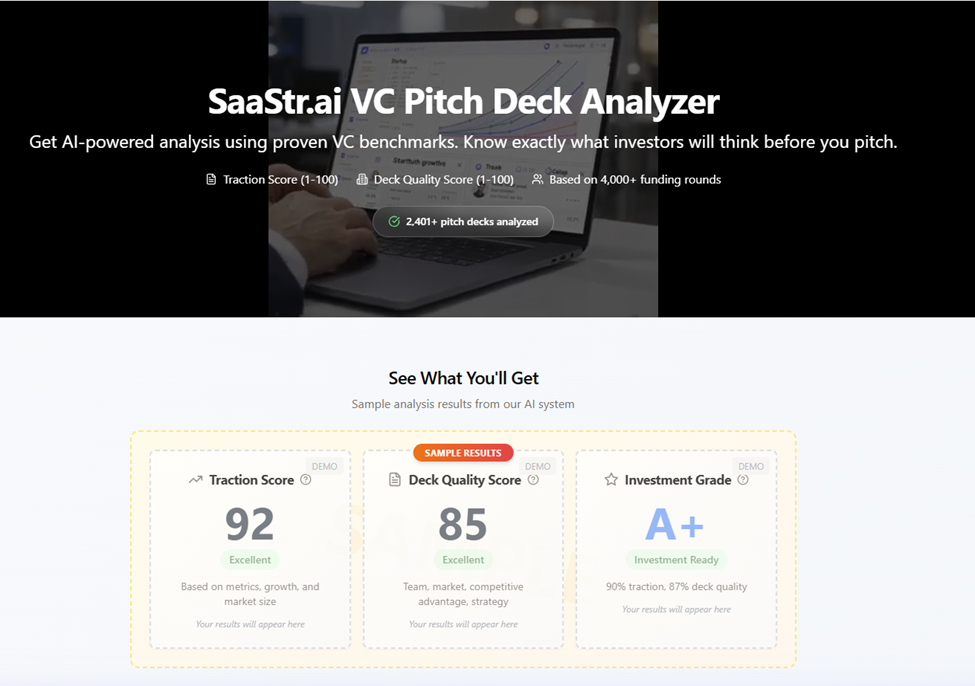 If you have already developed your deck and just want some quick feedback on it, test out the SasStr AI pitch deck analyzer, a superb tool to sharpen any pitch deck.