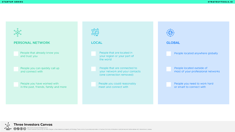 7. Investor list (target 100 qualified, local investors, ideally from your personal network, local investors and local angels)