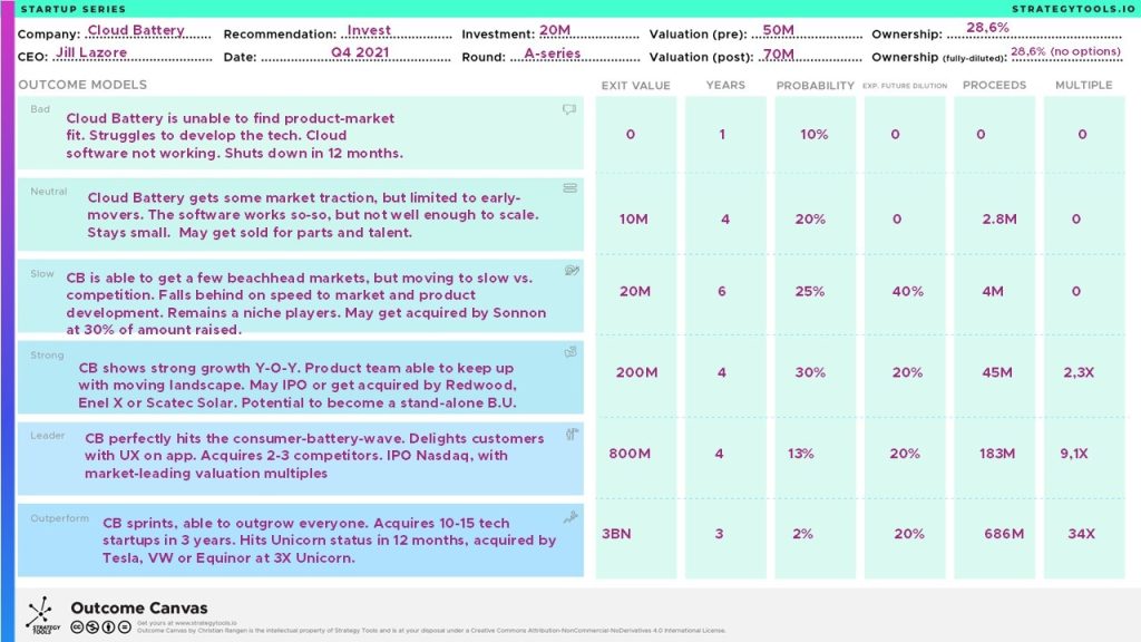 Outcome Scenarios One of the least understood concepts for most founders in the world of entrepreneurship (in our view, at least) is the idea of Outcome Analysis, or rather ‘if an investor invest, what is he/she likely to get back?’. Wow, how I wish more founders understood this (hey, we run a separate bootcamp just on this). For the bankers, the concept of Outcome Scenarios were easy to grasp, but hard to master. Few were able to nail it right off the bat (hey, they only had 45. Minutes, and impressed us with the results achieved in that time.