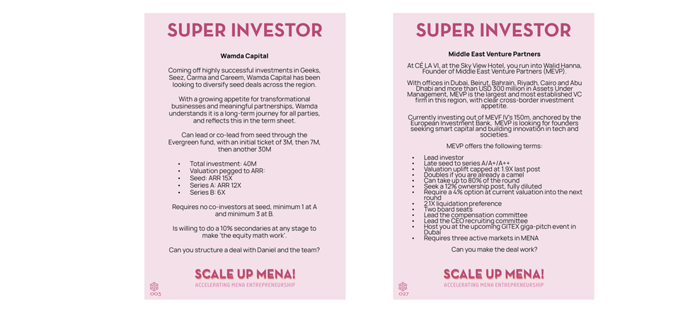 Two competing term sheets from two great Super Investors, Wamda Capital and MEVP. In Scale Up MENA, you will meet and navigate 100’s of competing investors and term sheets. Are you able to unpack the terms here?