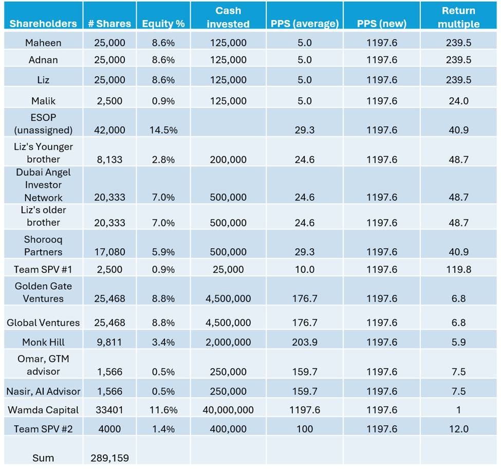 Cap Table – Updated Post-Malik’s Departure