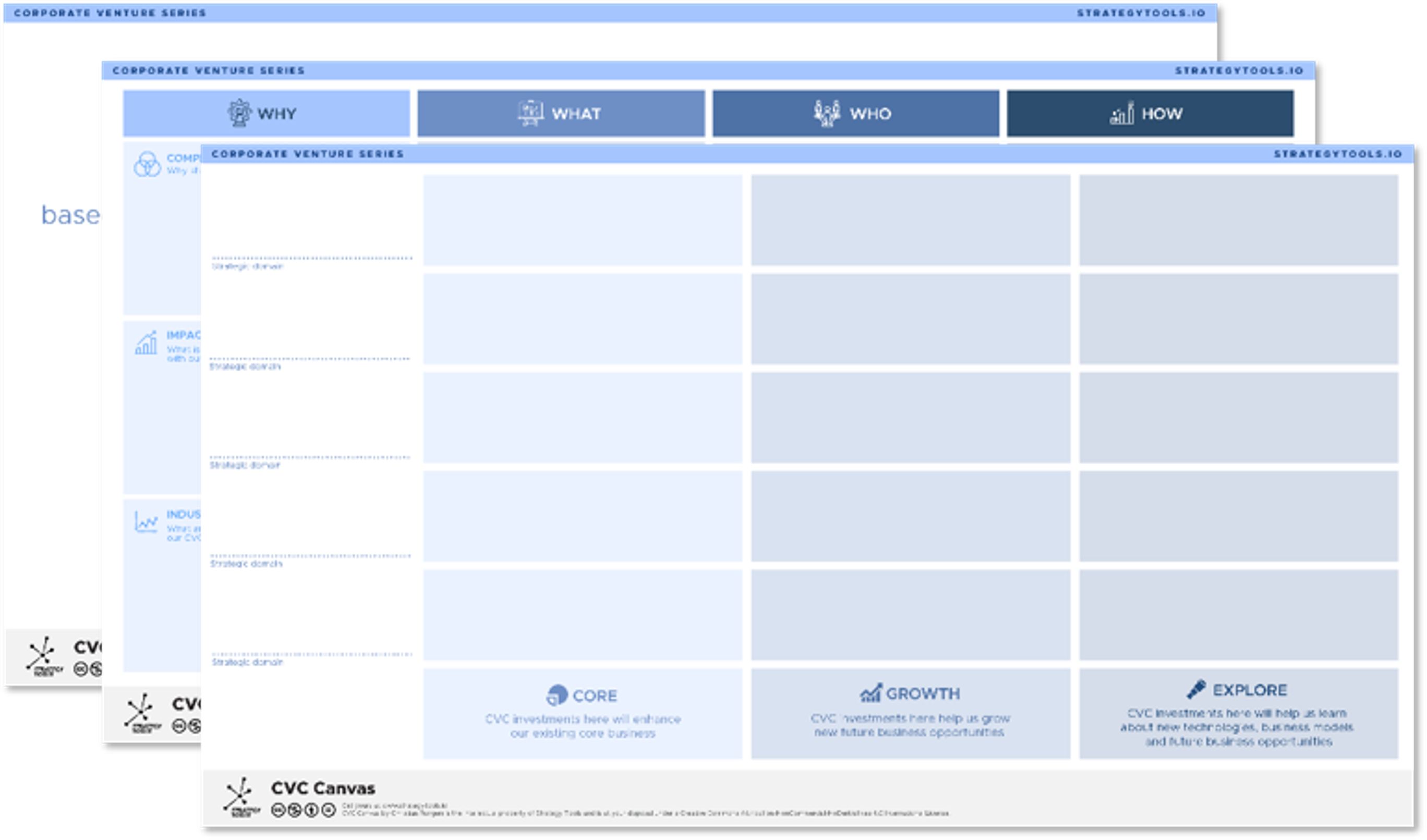 This series includes tools to help you establish and refine your CVC strategy from the ground up, visualize and manage your CVC portfolio effectively, and ensure alignment with your corporate strategy and innovation goals.