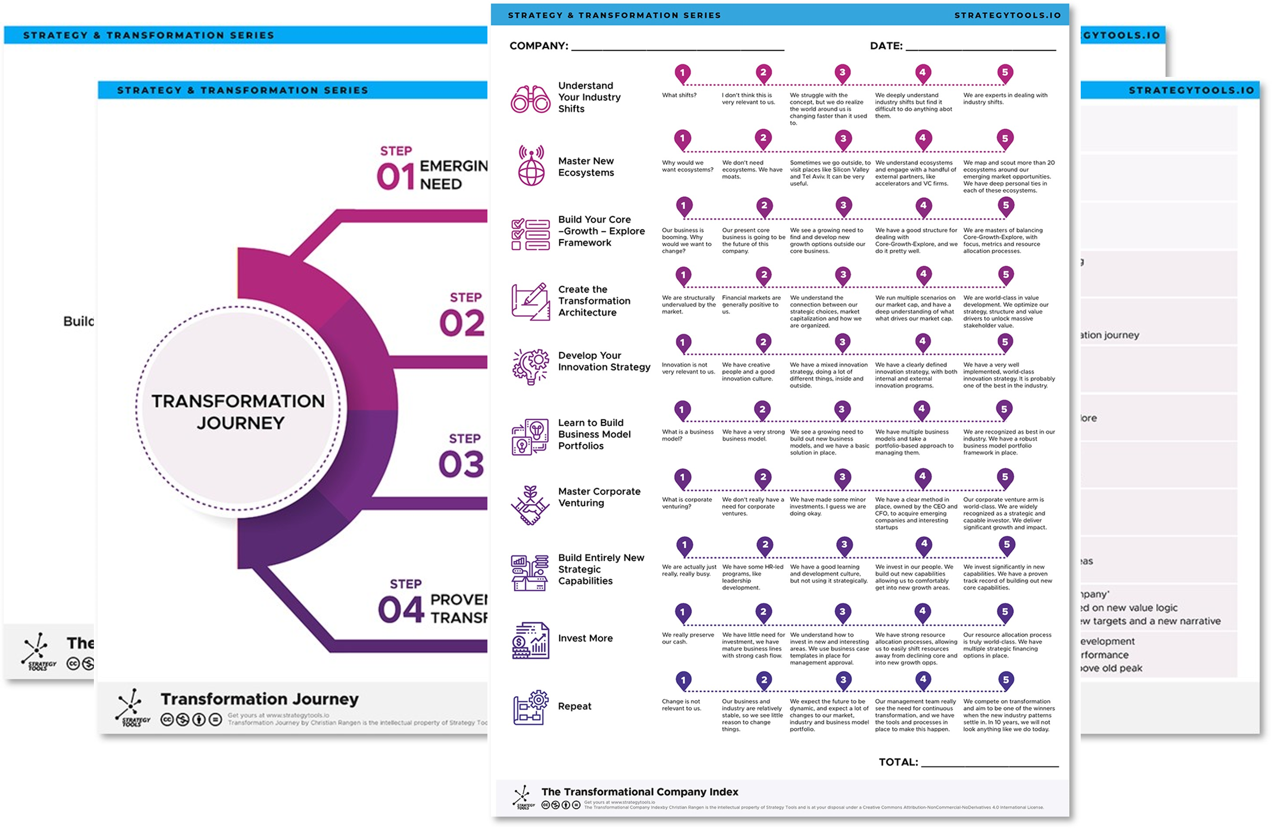 Get a total of 10 brand new strategy tools which you can use to build successful transformation strategies for your clients, lead your strategy team and guide your top management team through shocks, shifts and evolutions.