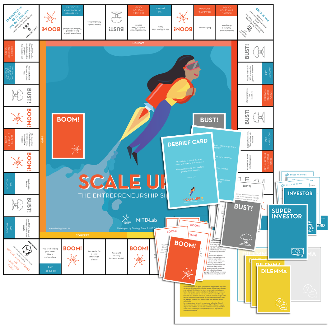To win at Scale Up X!, you will need to build an investor portfolio of 5 million and get across the finish line. Along the way, you need to collect investors, make difficult strategic choices, and deal with a number of unforeseen gender-based circumstances. Do you have what it takes to succeed?