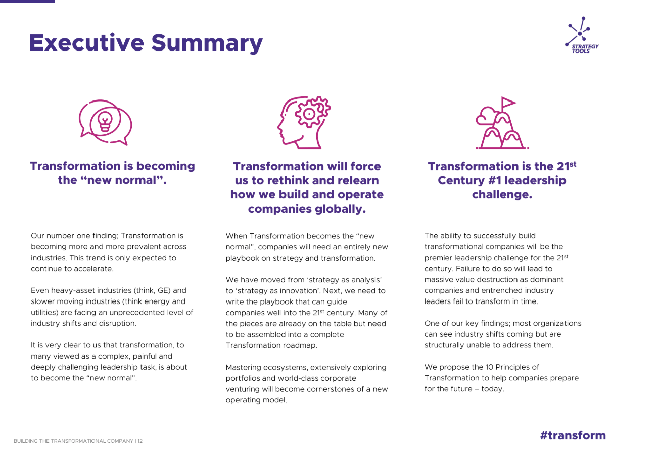 - A gateway into the larger Strategy Tools Solutions universe. Connect to the global community, complete the online program, run a masterclass or start your own Transformation Program; this report can help you get started on your long-term transformation strategy.
