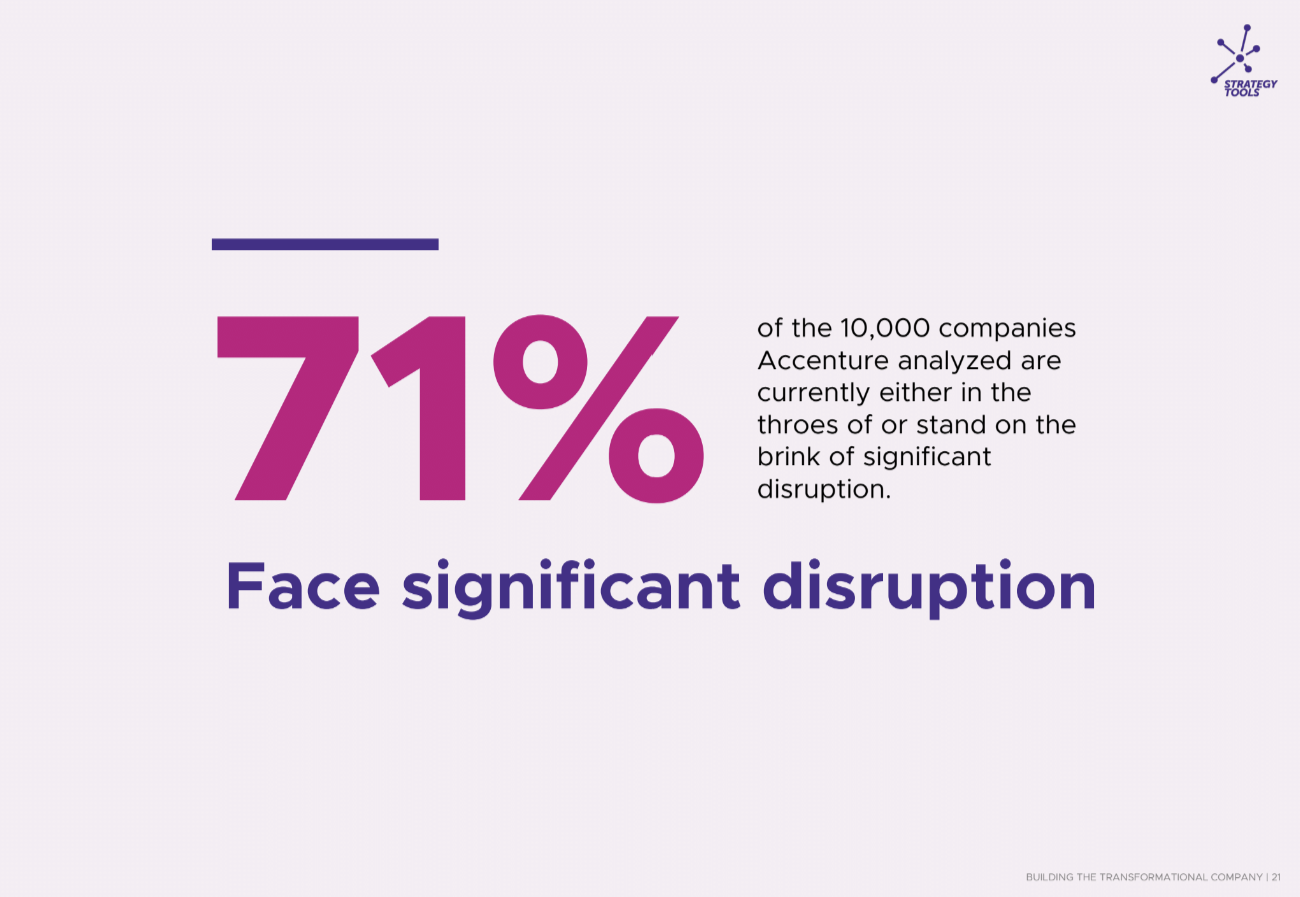 Equally deep is the belief that very few companies are actually set up for this future. They are simply not structured, built or led to become transformational companies. This is a massive challenge across industries. What we are witnessing is that the speed of innovation and need for transformation is picking up across virtually every industry.
