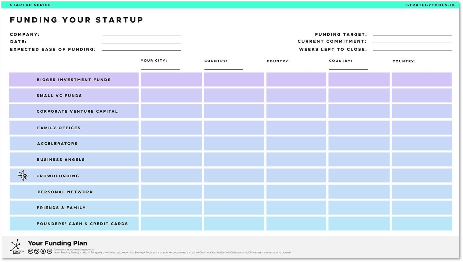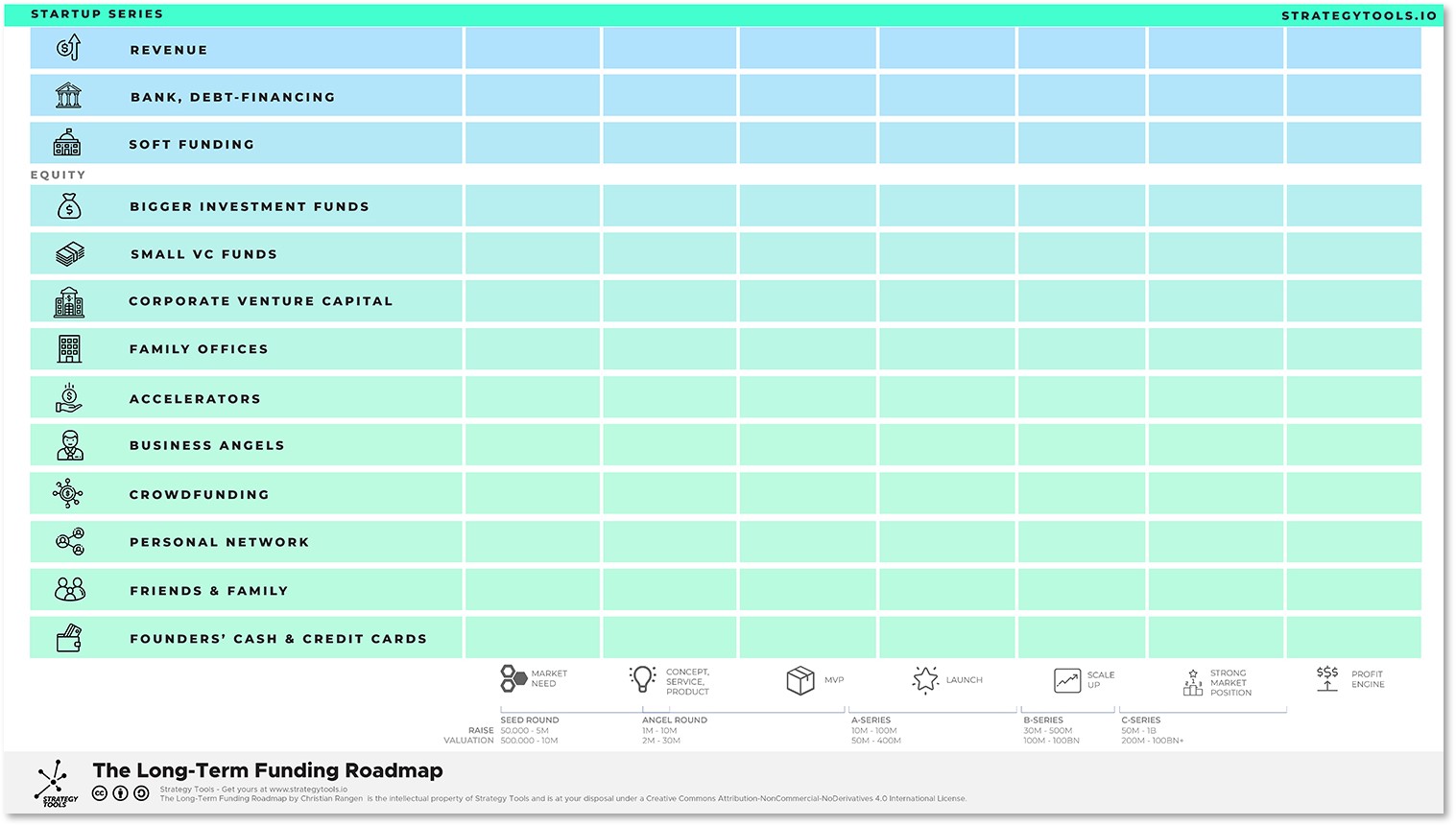 As its name suggests, the Long-Term Funding Roadmap helps you develop a long-term capital strategy for your startup. It’ll walk you through the different categories of investors and help you identify ways in which you can secure long-term growth capital.