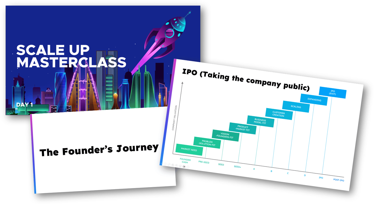 The Masterclass was designed to take founders through the “Founder’s Journey”, a 3-day experience from idea to successful exit.